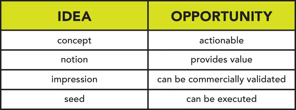 At this point it is appropriate to discuss the difference between business ideas and business opportunities.